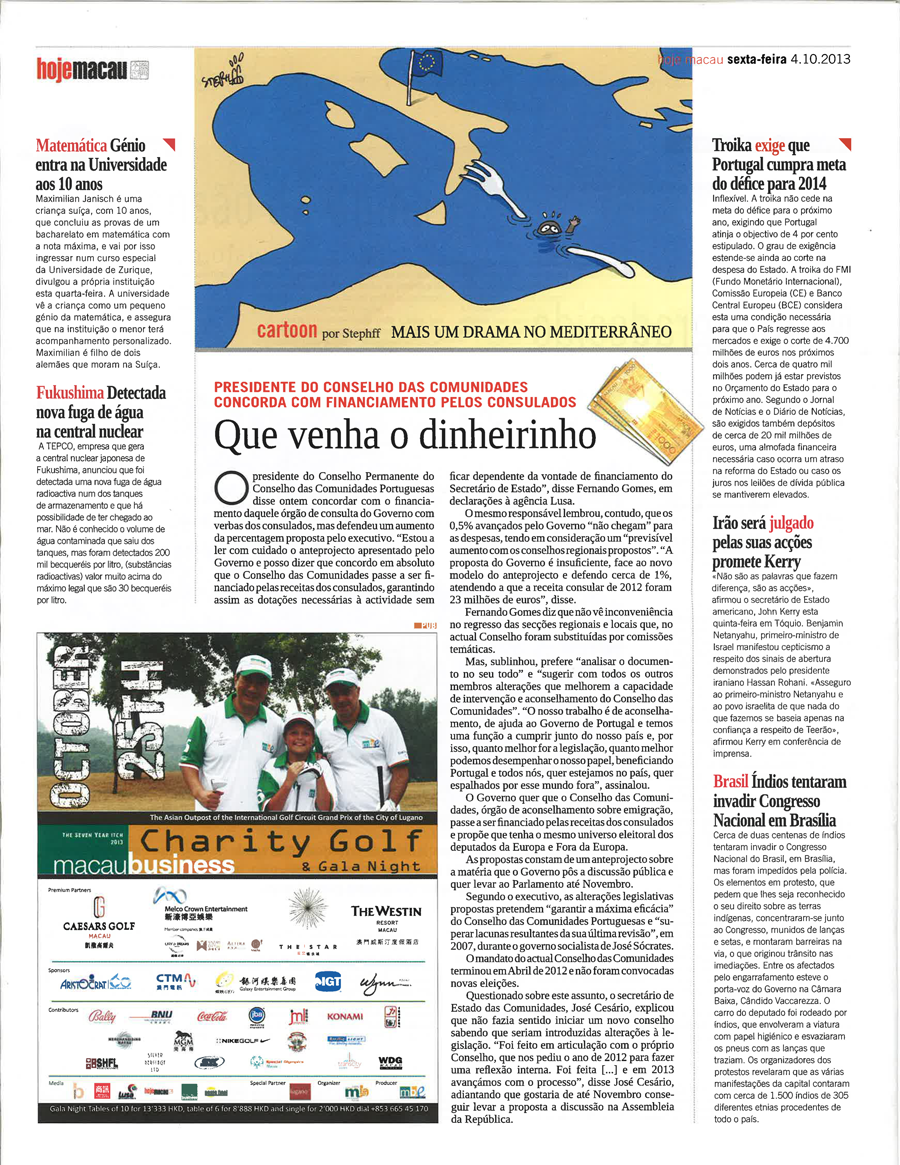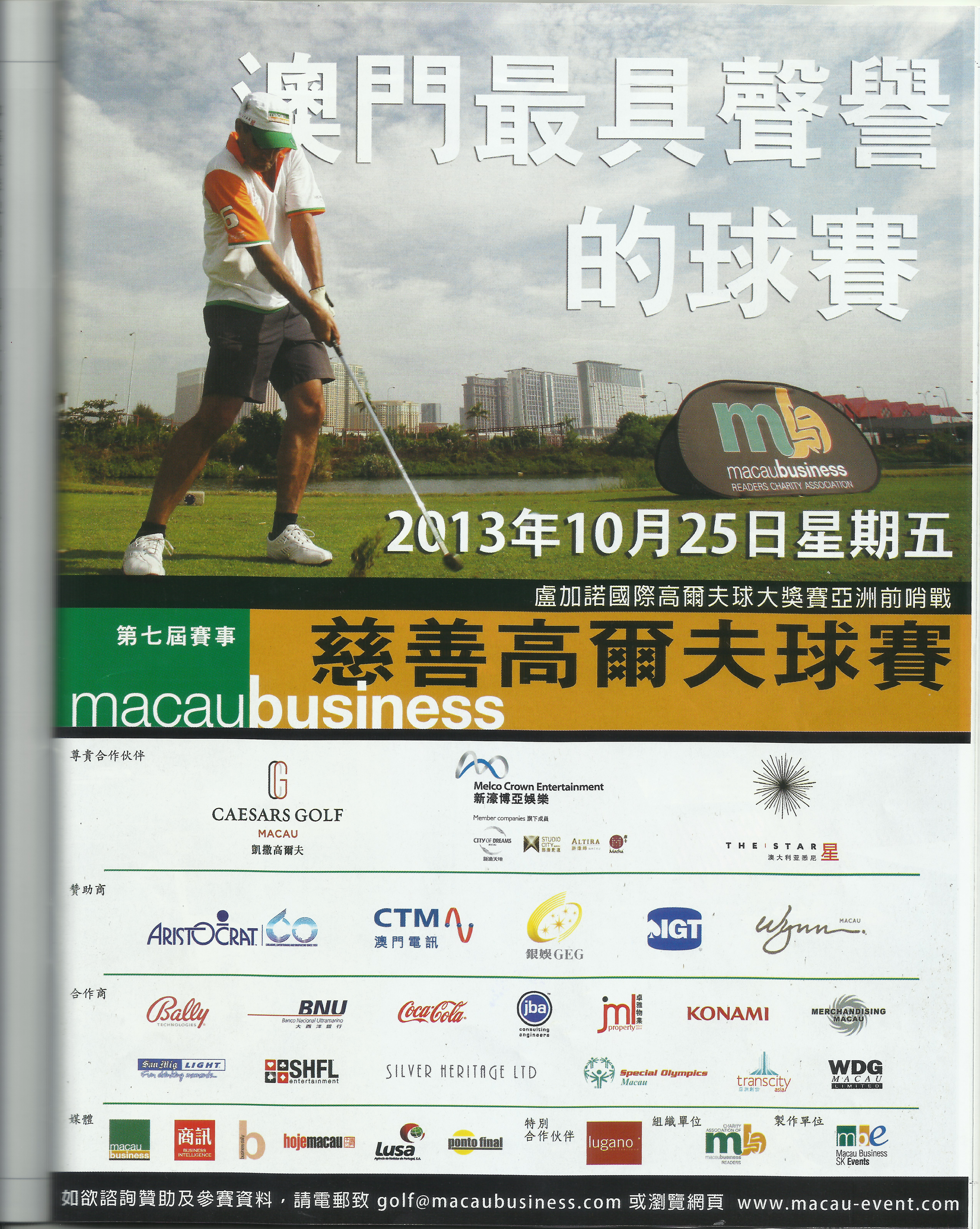 10-2013 - Article: "Golfing for charity (and fun)", on Macau Busines, English magazine |