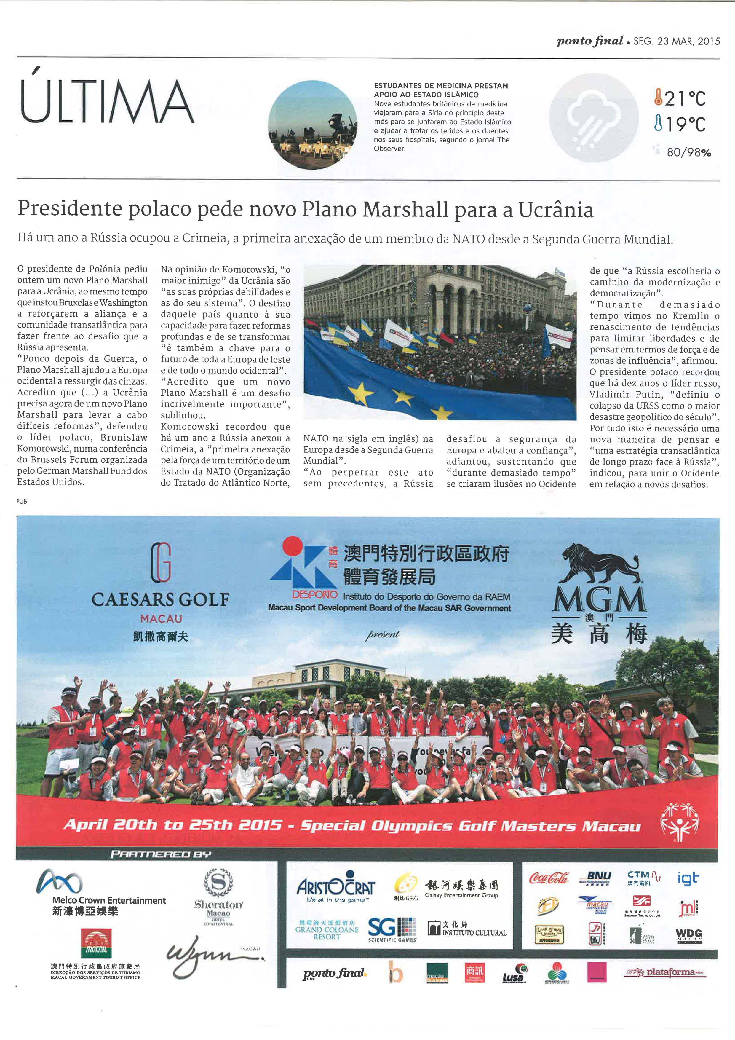 04-14-2014 - Advertisement for the Macau Special Olympics Golf Masters 2014 in Tribuna Journal