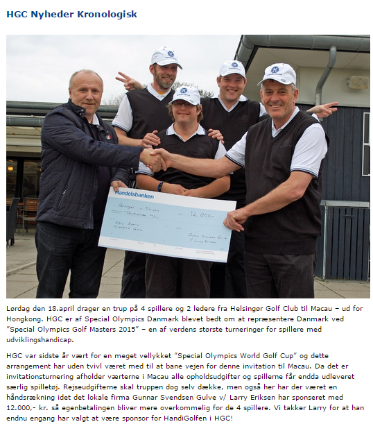 4-30-2015 - HGC Nyheder Kronologisk - Article about the Journey of Special Olympics Denmark to Macau