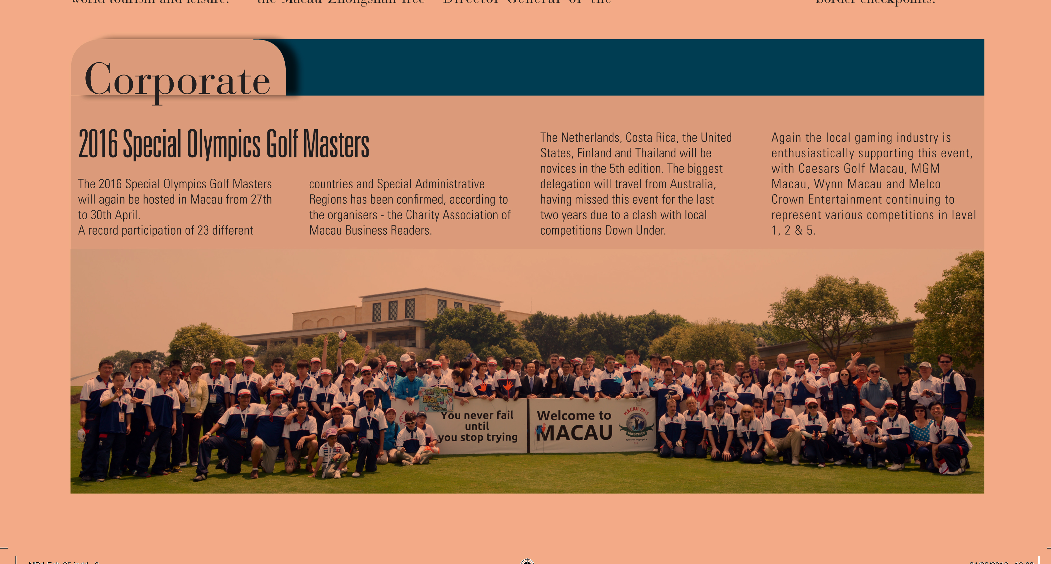 March 2016 - Macau Business Magazine - "2016 Macau Special Olympics Golf Masters"